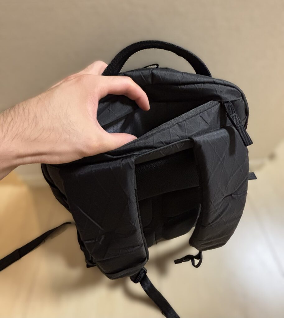 AbleCarryの別商品「MAX Backpack」のRipstop素材も持っていますが、X-PACのほうが断然丈夫な印象です。
