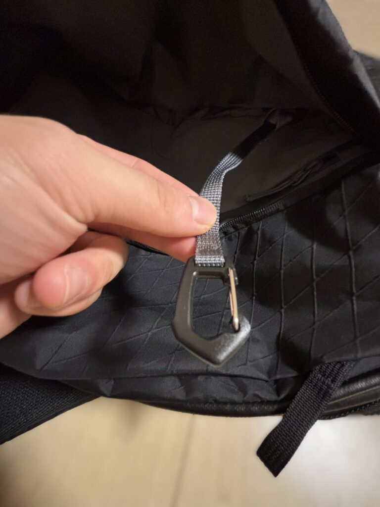 普段背負ってる時は首下あたりで人から見えないかつ触れられない位置のポケットのため貴重品を入れる用途で使ってます。これすごく便利。