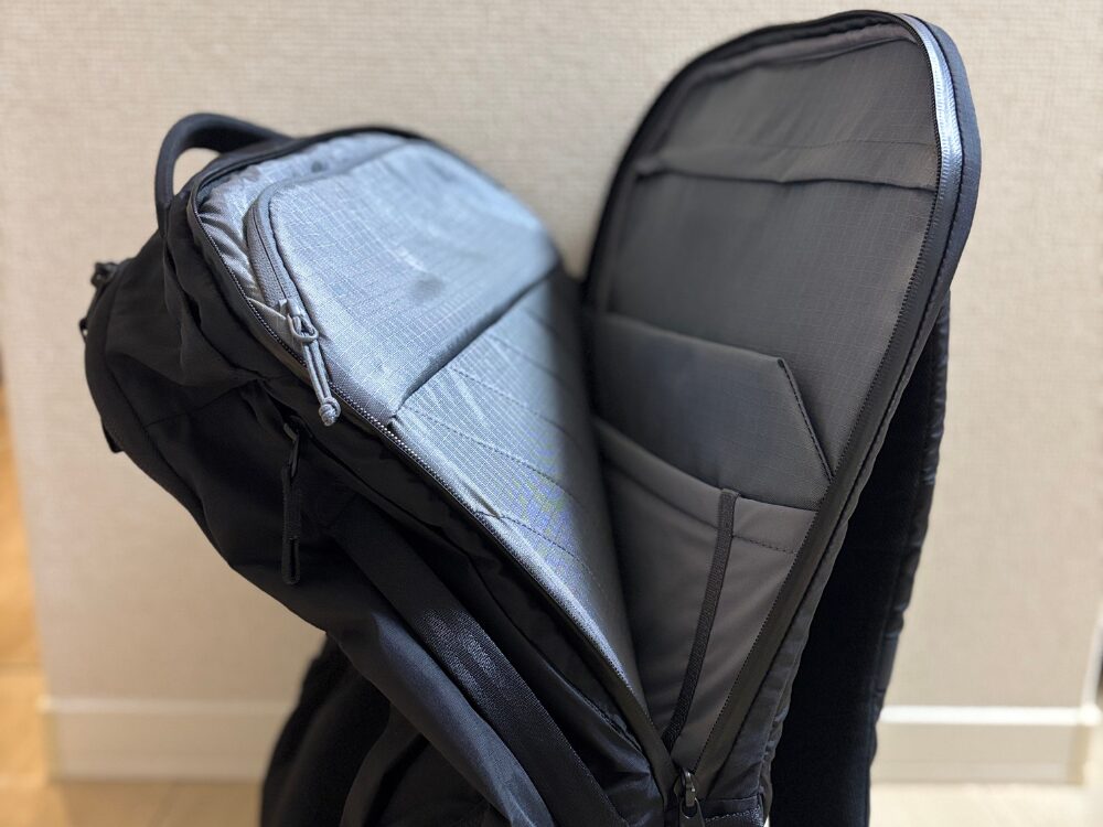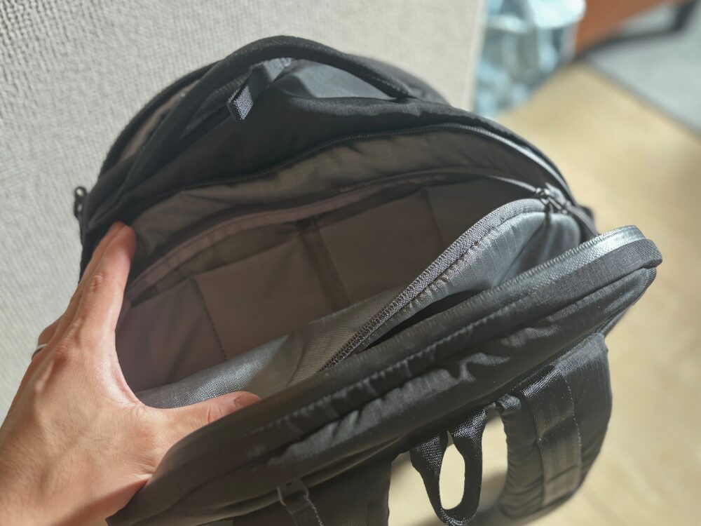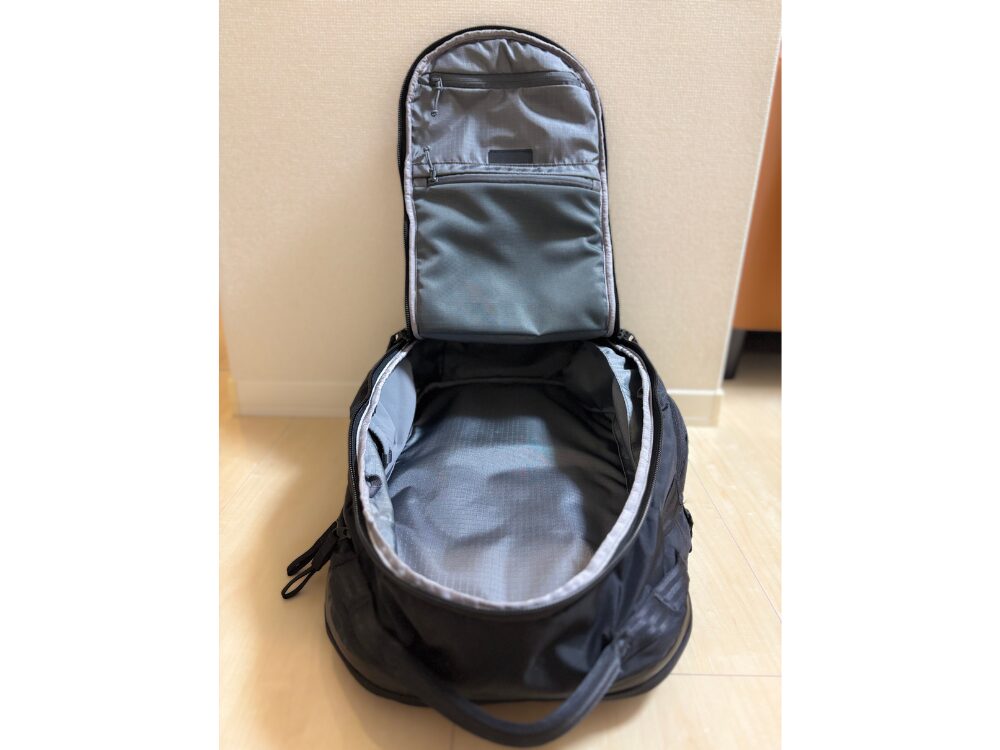 メインコンポーネントはこんな感じ。ガバっとバックパックの表面が開閉できるようになっておりスーツケースのようにアイテムを収納できるのがポイント。視認性がよくすごく使いやすいです。