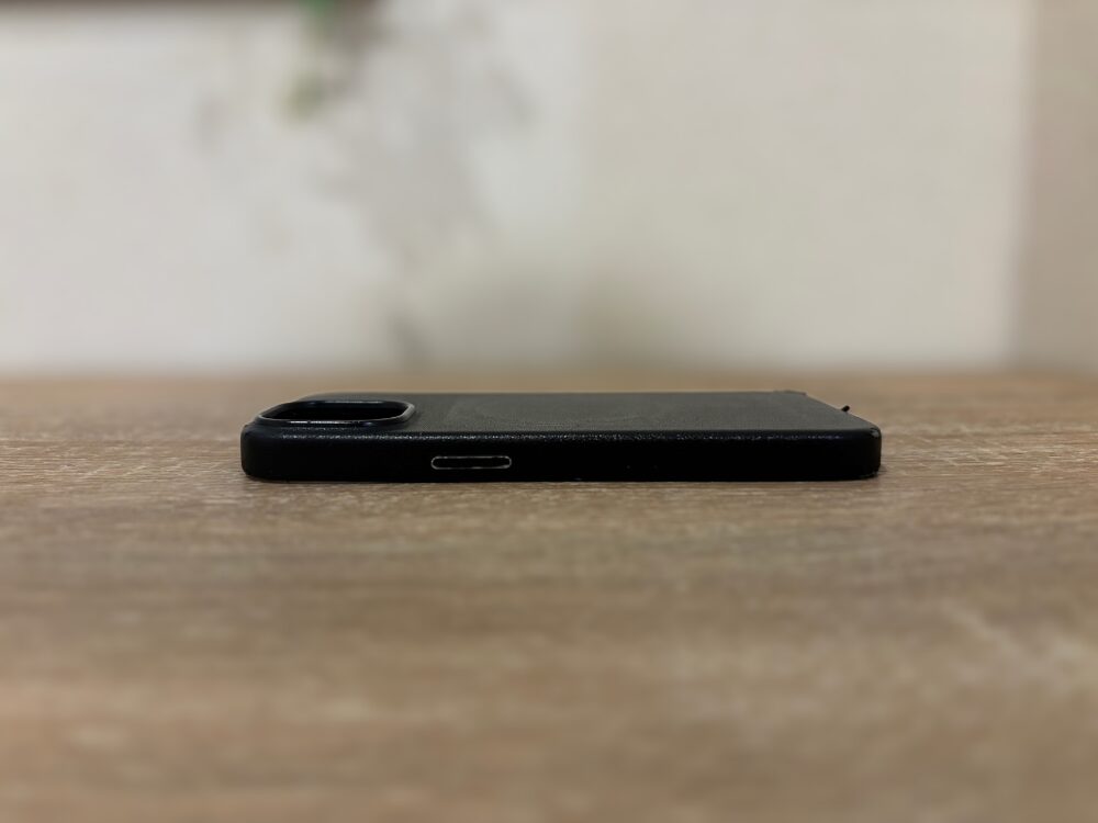 ヴィーガンレザー自体の耐久性はある程度信頼できるものではありますが、ケースを落としてしまったり、どこかに引っ掛けてしまうと捲れてしまうくらいの耐久性ではあります。