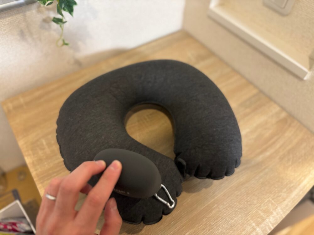 口をつけて膨らませる必要はありません。内蔵されたポンプを指でプッシュするだけで、あっという間に膨らみます。周囲の目を気にせず、スマートに準備ができるのは大きなメリットです。
