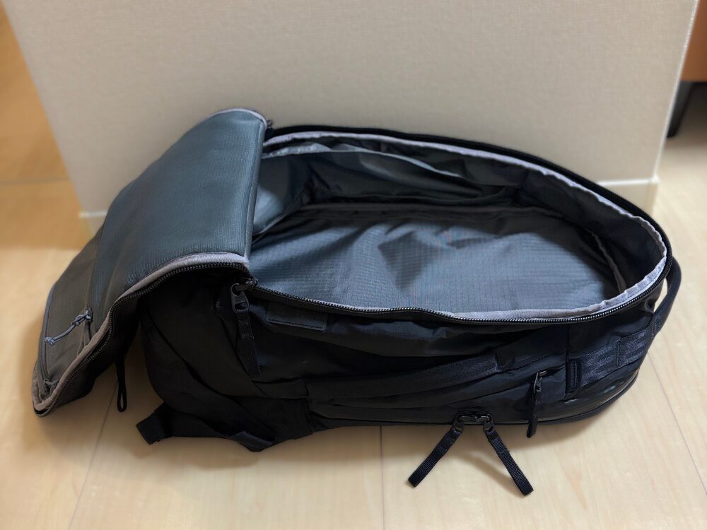 メイン、仕事用(PC)、小物の3つのコンパートメントが完全に独立。空港の保安検査でPCをサッと出し、機内でネックピローをスマートに取り出す。その一連の動作に一切の迷いが生まれません。